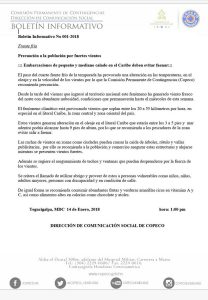 COPECO recomienda precaución a embarcaciones por fuertes vientos.