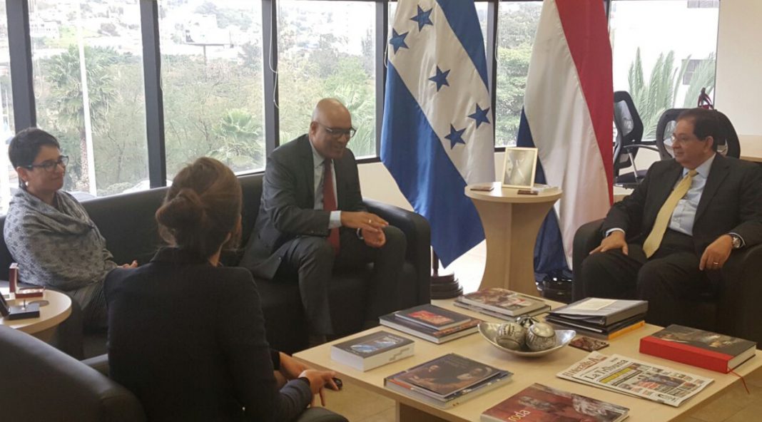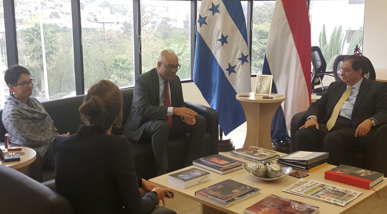 Derrek Hof realiza una visita de cortesía al país con el propósito de ratificar el deseo de su Gobierno de continuar estrechando las relaciones con Honduras y a la vez informarse de las circunstancias en que asumirá un nuevo período el presidente Juan Orlando Hernández.