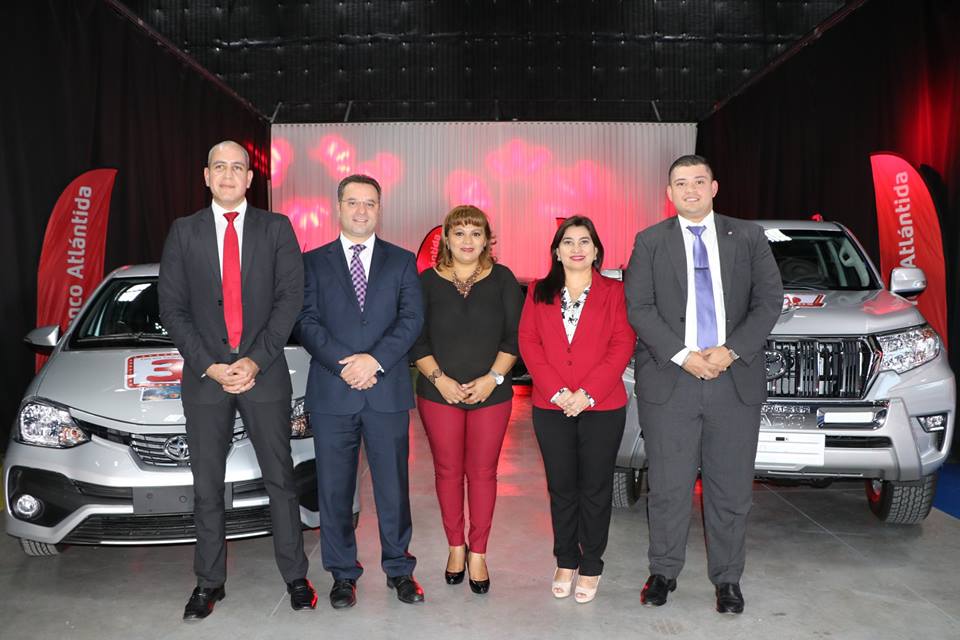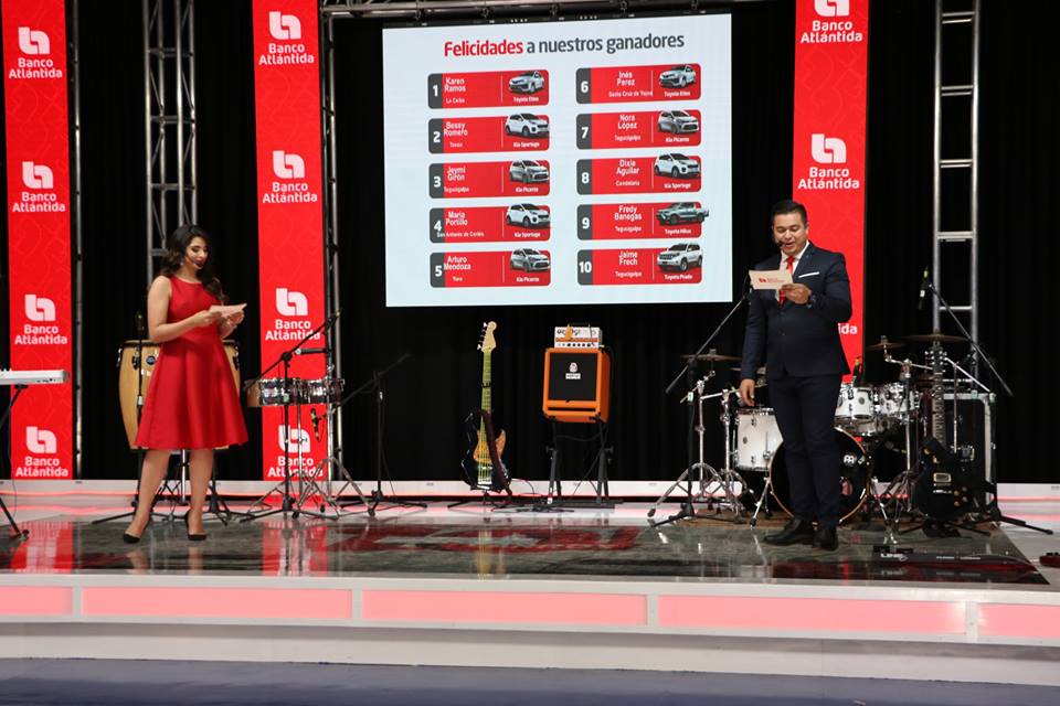 En esta primera entrega, Banco Atlántida regaló 10 vehículos, 3 Kia Picanto, 3 Kia Sportage, 2 Toyota Etios, 1 Toyota Hilux y 1 Toyota Prado.