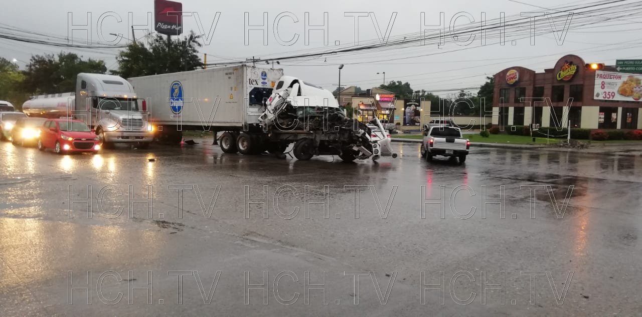 Este martes se reporta una brutal colisión entre dos rastras en el bulevar del Norte en Choloma Cortés.