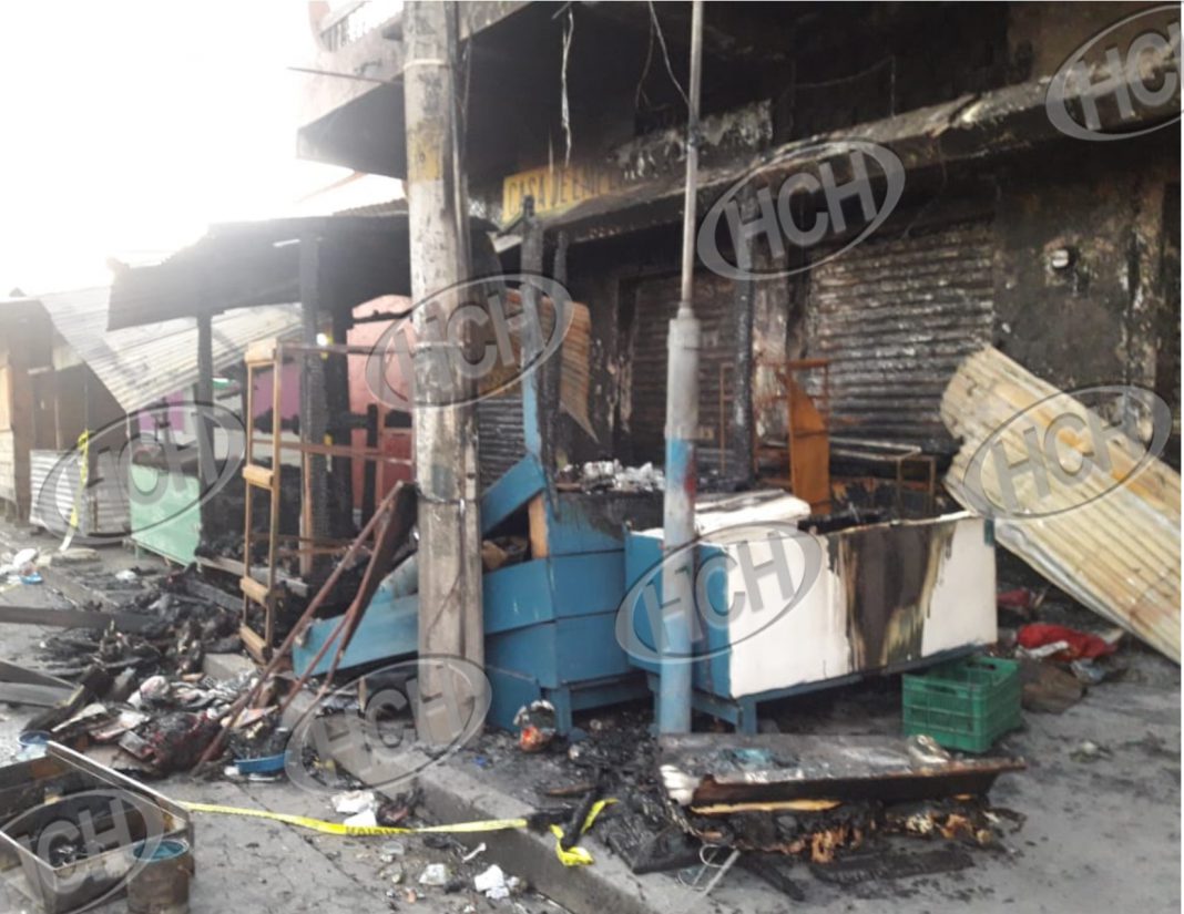 El la ciudad Sampedrana el siniestro ocurrió en el barrio Medina de San Pedro Sula, El Cuerpo de Bomberos llego rápidamente al lugar a tratar de controlar las fuertes llamaradas, tras varios minutos de incesante trabajo lograron apagar el fuego que consumía cuatro puestos de mercadería de este lugar.