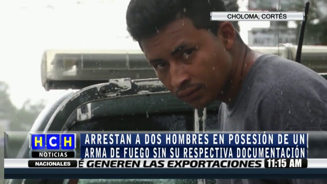 Elementos de la Policía detienen este miércoles a dos hombres con posesión de un arma en Choloma, Cortés.