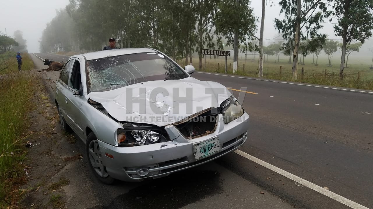 Un vehículo tipo turismo impactó fuertemente con una vaca en la carretera principal de Olancho.
