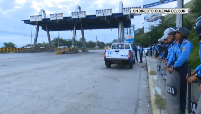 Bajo resguardo policial peaje en salida al sur de #SPS, por anuncio de tomas