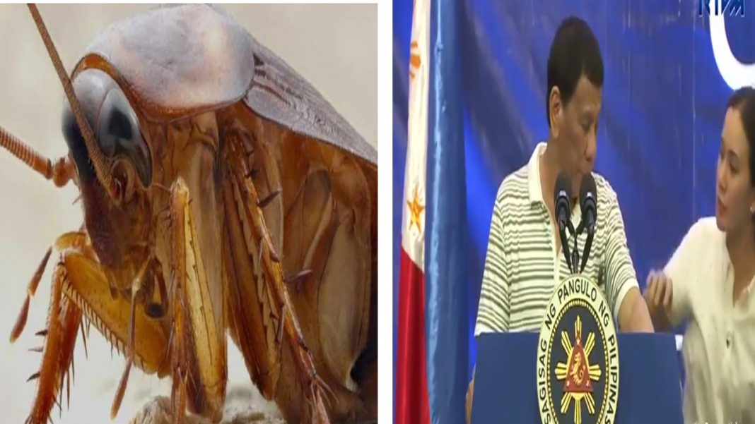 El presidente de Filipinas, Rodrigo Duterte, fue interrumpido por una enorme cucaracha durante un discurso televisivo en la noche del último miércoles.