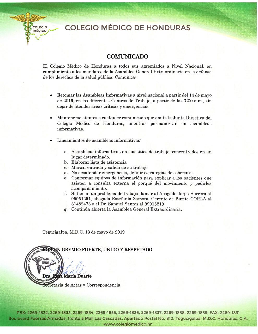Médicos anuncian Asambleas Informativas a nivel nacional a partir de este martes