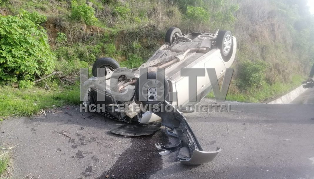 El conductor de u vehículo tipo turismo fue el que se accidentó cuando impactó contra el paredón de la carretera y seguidamente sufrió volcamiento, quedando llantas arriba su automóvil.