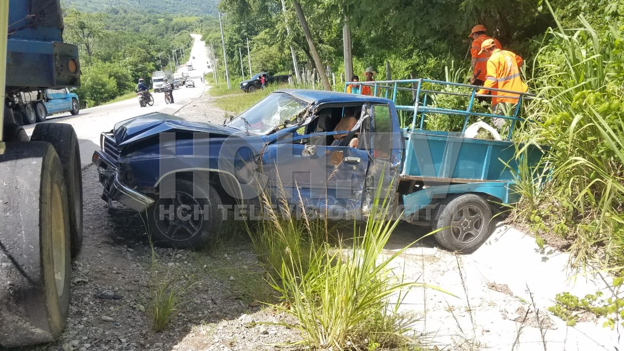 En la ca4 en el desvío a San José Copan una rastra cargada de refrescos colisionó contra un camión cargado de vacas y un pick up que trasladaba una cuadrilla de jornaleros que dejó a una persona herida.