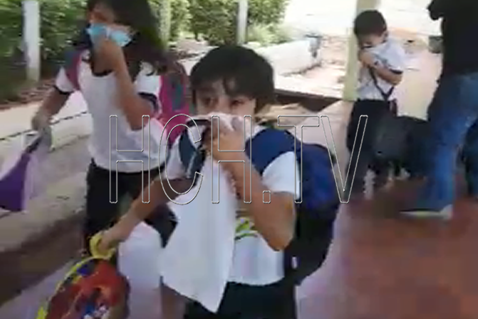 Llorando desconsoladamente y despavoridos, salieron los pequeñines de sus aulas de clases, visiblemente asustados y desesperados por alejarse del área donde se dispersaba el gas lacrimógeno que afectó sus ojitos y les dificultó la respiración.