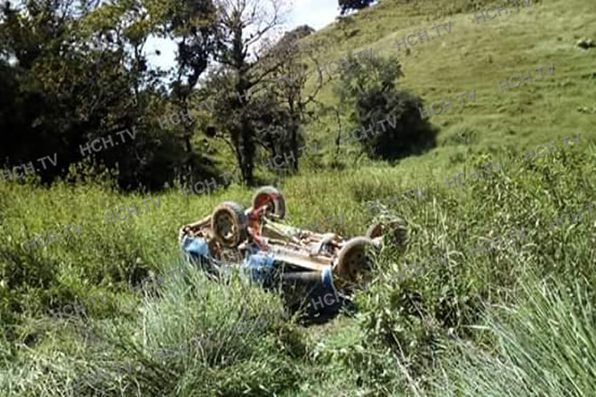 Dos personas resultan heridas luego de accidente vial tipo volcamiento en Mercedes, Ocotepeque