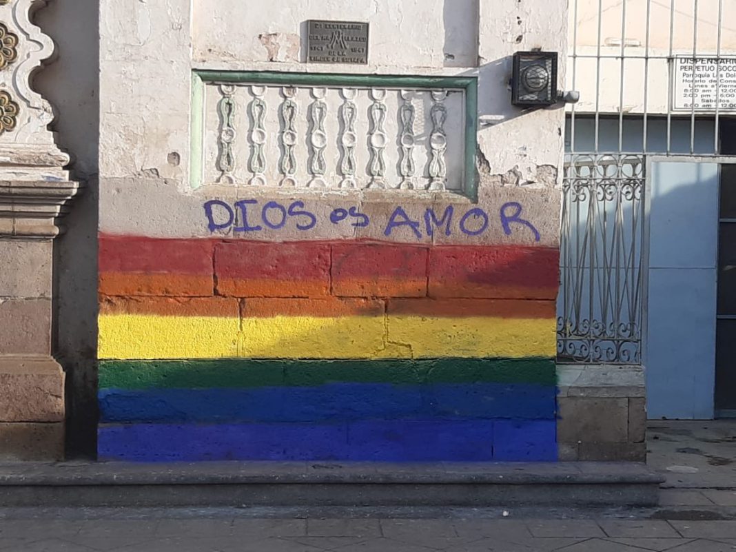 Los colores del arco iris, que simboliza a la comunidad LGTBI, que fueron pintados en las paredes de la iglesia Los Dolores motivaron a una acción legal en contra de quienes realizaron el acto, explicó Marvin Villanueva miembro de la parroquia.