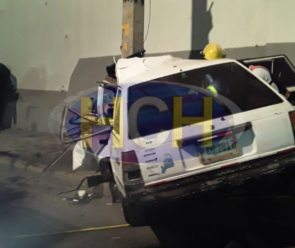 El accidente se dio a inmediaciones del aeropuerto Toncontín cuando un vehículo tipo turismo impacto contra un poste de energía eléctrica.
