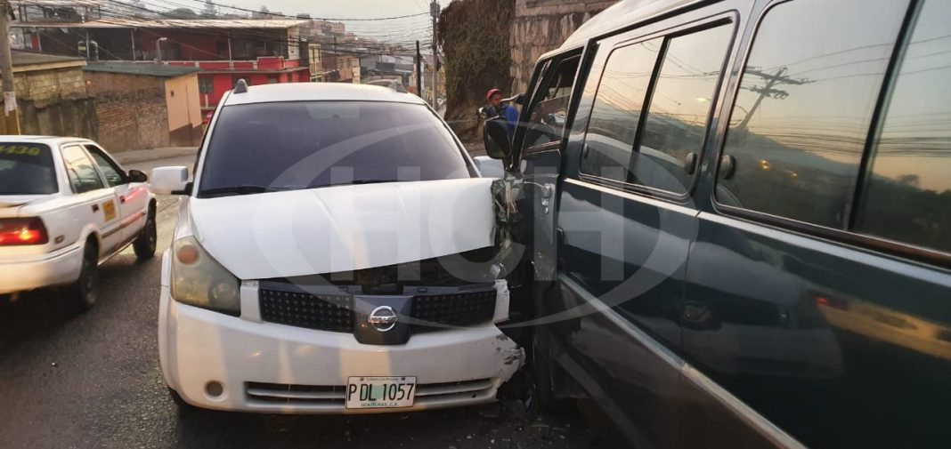 Un irresponsable motorista en supuesto estado de ebriedad en la colonia Monseñor Fiallos de Comayagüela invadió el carril contrario impactando contra una unidad de transporte privado que conducía a 4 niños a un centro escolar.