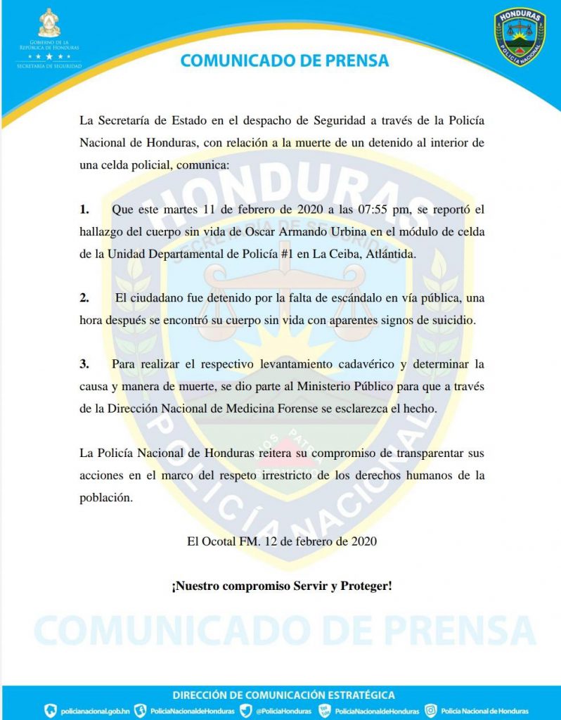 Se reporta la muerte misteriosa de una persona dentro de la posta policial de la ciudad de La Ceiba del departamento de Atlántida.