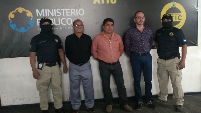 Los procesados son empleados de la Región Sanitaria Metropolitana de Salud de Tegucigalpa, entre ellos: el exdirector Wilson Mejía Murrilo, el exadministrador Edil Aníbal Rodríguez Sánchez y el exencargado del Almacén, César Alejandro Izaguirre, acusados por tres delitos de fraude, tres de falsificación de documentos públicos y tres delitos de abuso de autoridad y capturados el pasado lunes por agentes del Departamento de Apoyo Estratégico, Operaciones Especiales y Comunicaciones de la ATIC.