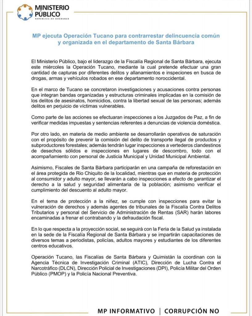 El #MP ejecuta #OperaciónTucano para contrarrestar delincuencia común y organizada en #SantaBárbara