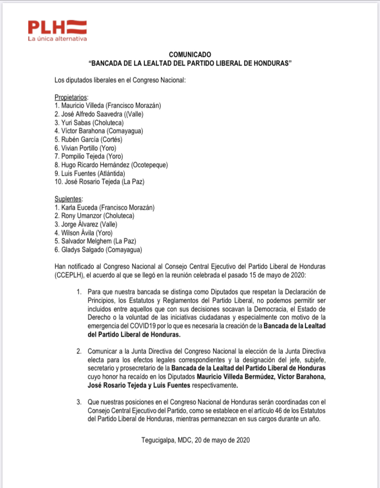 «Bancada de la Lealtad» se desmarca de «los que socavan la Democracia»