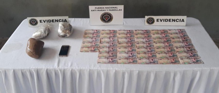 Veinte mil Lempiras producto del cobro de la extorsión, Tres paquetes de supuesta Marihuana y un teléfono celular que utilizaba para acciones ilícitas.