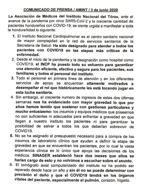 "No podemos seguir cargando con culpas ajenas ni seguir mintiéndole al pueblo hondureño. SINAGER no ha dado la cara, no nos han asignado presupuesto para tratar pacientes por Covid-19 y el Hospital ya solamente tiene 12 camas disponibles": Asoc.Médicos del Tórax pic.twitter.com/OeBZ9bWrdv