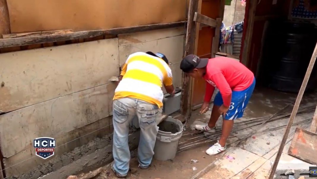 ¡Para no sufrir tanto el no poder detener goles! #niñoportero ayuda a su papá en la albañilería