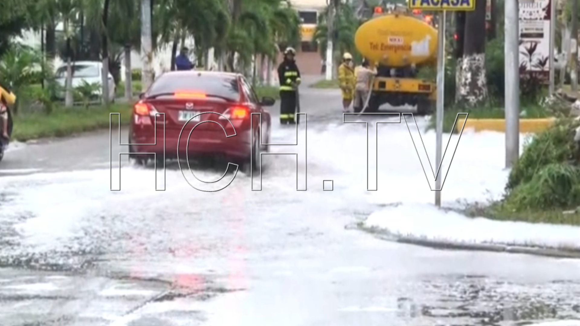 Bomberos atienden derrame de líquido detergente en la colonia 15 de septiembre de La Ceiba