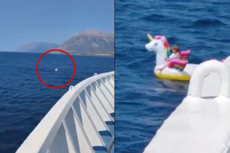 Una tripulación rescató a una niña de cuatro años de edad que se encontraba sobre un salvavidas de unicornio en medio del mar de Grecia.