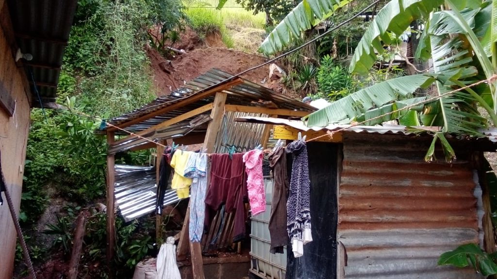 Reporta el personal de en la Colonia Villanueva sector 7A de dos viviendas afectadas por deslizamiento de terreno