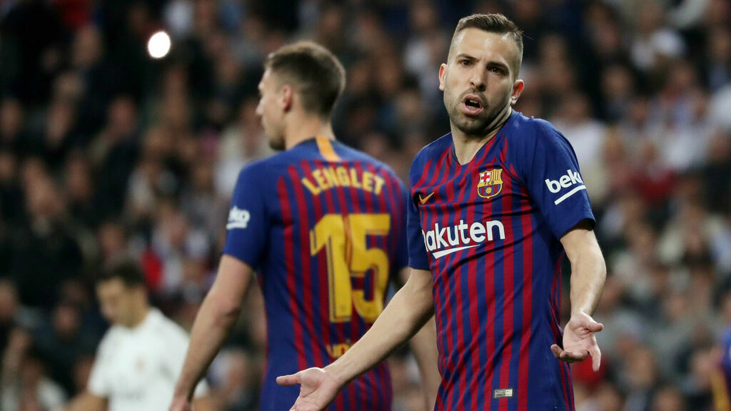 Se confirmaron los malos presagios para Jordi Alba, después de que anoche tuviera que abandonar el terreno de juego en el minuto 75 del partido ante el Sevilla para que entrara en su lugar el debutante Sergiño Dest.
