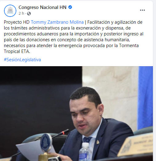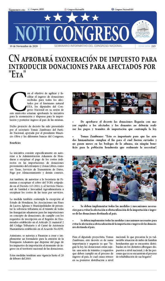 InicioHCH POLÍTICACN aprueba se exonere la introducción de donaciones para damnificados