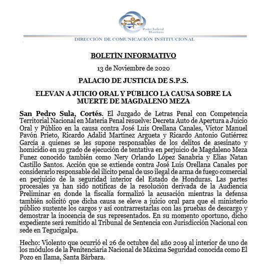 Los imputados son José Luis Orellanana Canales, Victor Manuel Pavón Prieto ,Ricardo Adalid Martinez Argueta y Ricardo Antonio Gutierrez acusados de ejecutar a Magdaleno Meza también conocido como Nery Orlando Lopez Sanabria y Elias Natan Castillo Santos.