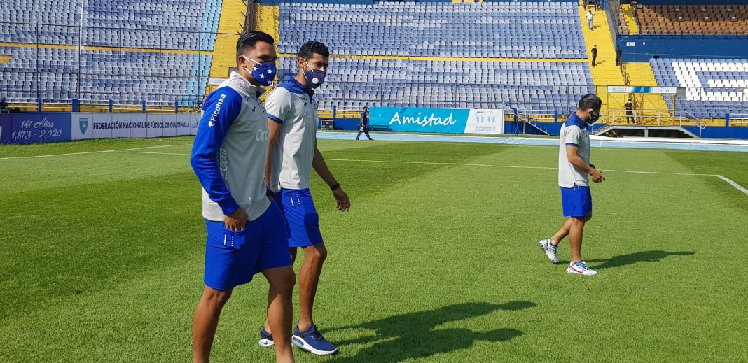 ? Los de #LaH pisan el terreno de juego del estadio donde en aproximadamente una hora enfrentan a su similar de #Guatemala ??.