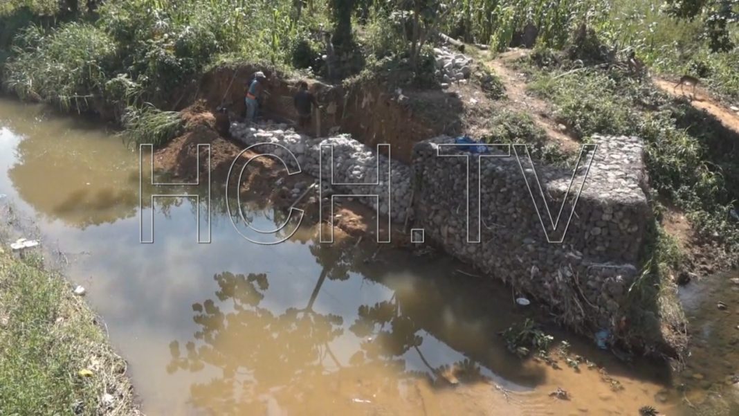 Vecinos de la colonia Dantony de La Ceiba construyen la borda de una quebrada