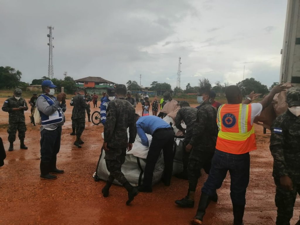 el día de hoy Sábado 21-12-2020,a las 10:00 horas llego una ayuda humanitaria internacional de víveres que van hacer entregados a la.poblacio. de la Mosquitia que salió Damnificada durante los Huracanes ETA e IOTA siendo llevada hasta el Aeropuerto de Puerto Lempira, departamento de Gracias a Dios para las víctimas de los huracanes IOTA y ETA, en este departamento y donde la Policía Nacional brinda seguridad y ayuda en el traslado y custodia de víveres, desde la base Naval de Caratasca en este departamento, por el elicoptero del Comando Sur de los Estados Unidos de norteamérica*, con el apoyo de USAID., y donde también participan las Fuerzas Armadas de nuestro país.