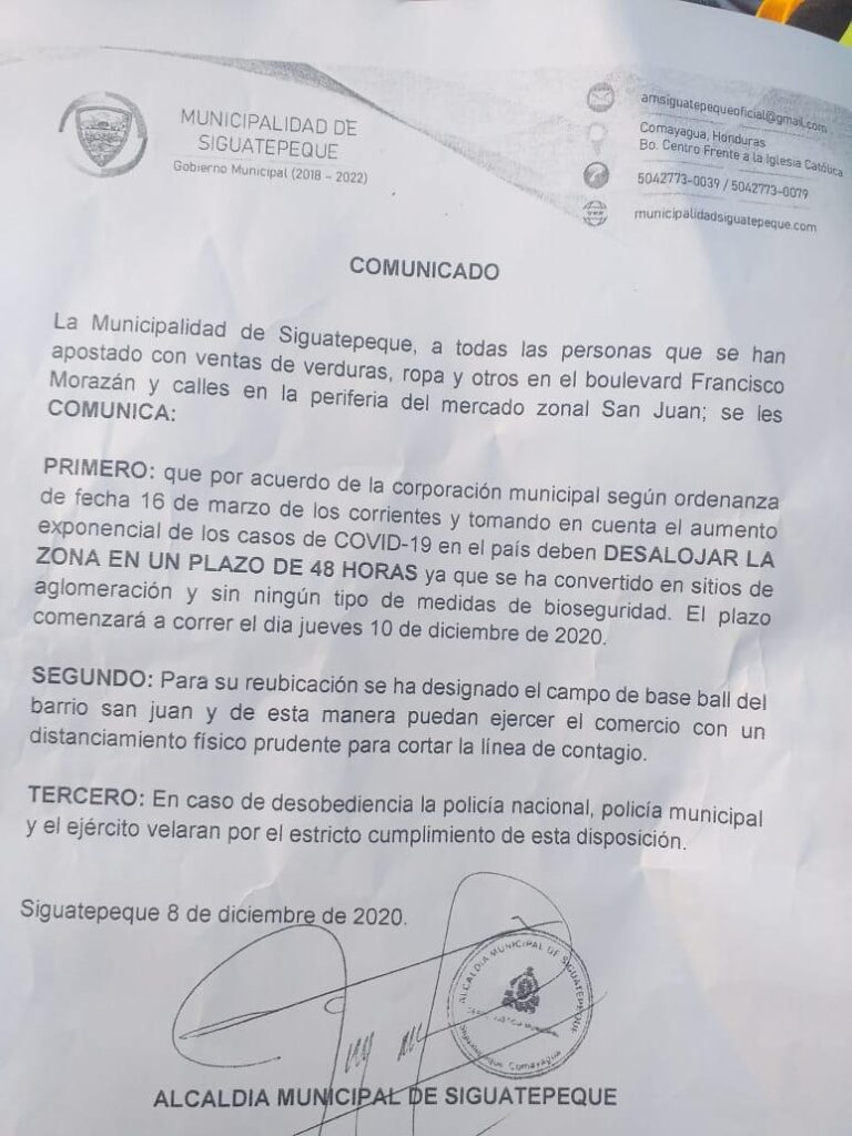 ¡Desalojo! Emplazan a vendedores para que desalojen bulevar y periferia de mercado en Siguatepeque