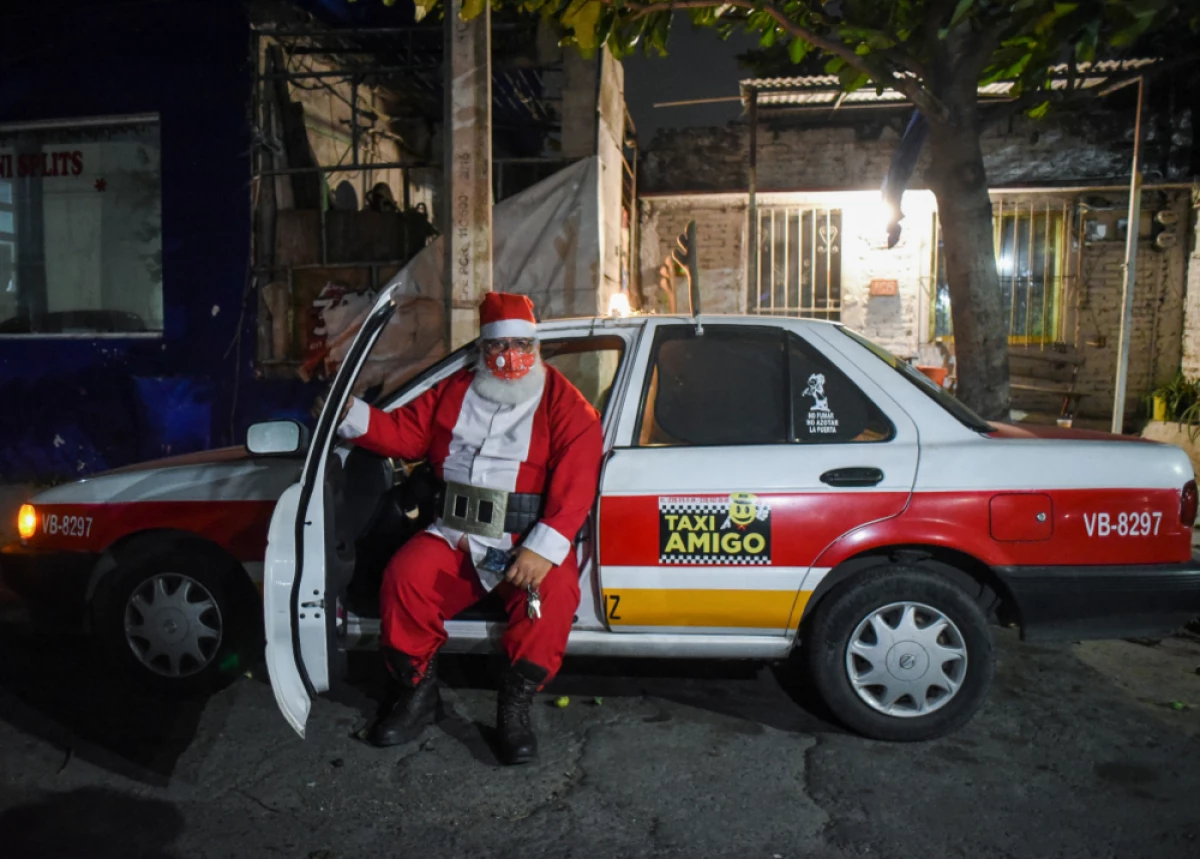 «No me había fallado», dice un Papá Noel mientras intenta encender su coche descompuesto. Es Francisco Monzón, este taxista mexicano se disfraza de Papá Noel para esquivar los apuros económicos que deja la pandemia, esto logró aumentar sus propinas para capotear la crisis que desató el COVID-19 .