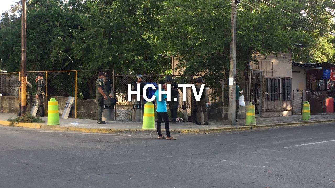 Miembros de la policía municipal de San Pedro Sula se encuentran apostados en la segunda avenida del centro de la ciudad para evitra que vendedores ambulantes se «adueñen» de la calle.