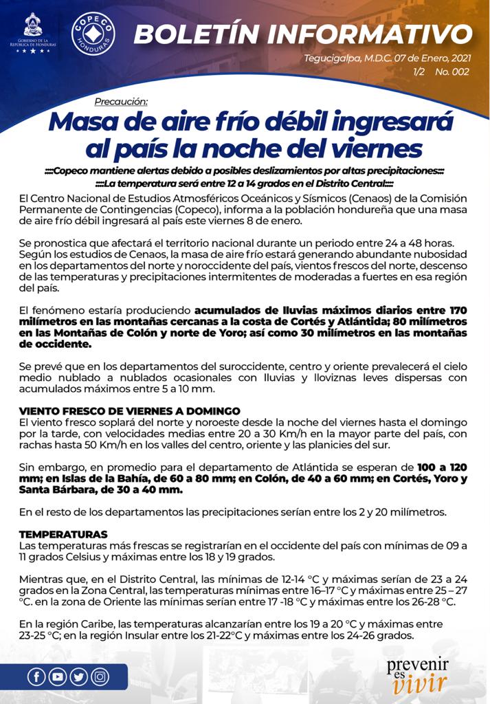 ¡Mucho Frío! Hasta 4 grados descenderán temperaturas en Honduras