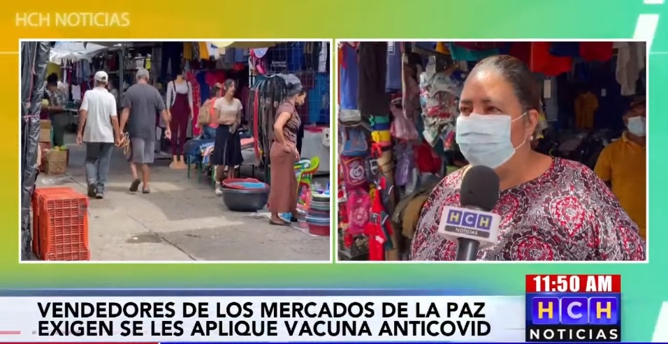 Vendedores del mercado de la ciudad de La Paz, exigen vacunas contra la Covid-19, ya que están expuestos al virus todos los días.