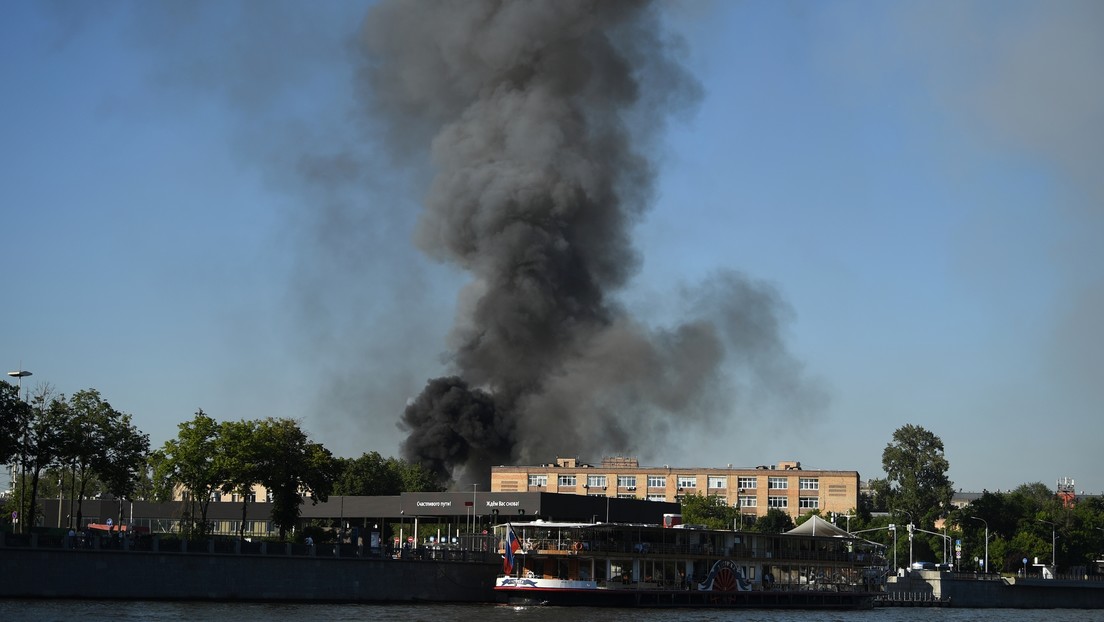 El tránsito de vehículos fue limitado en el malecón Luzhnetskaya, en las inmediaciones del incendio.