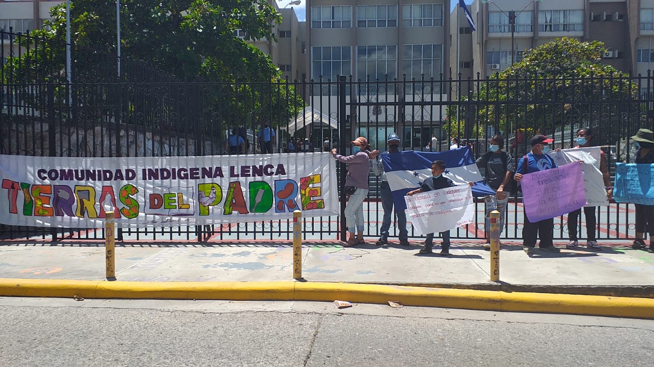 ¡Denunciando desalojo! Comunidad Indígena Lenca realiza plantón frente a la CSJ