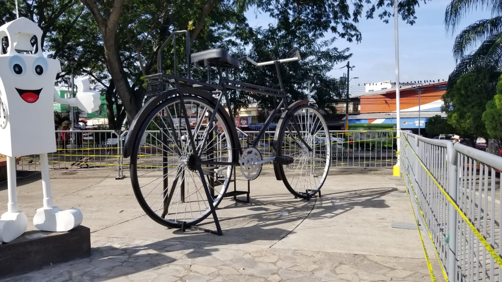 Colocan bicicleta en el parte Las Mercedes, en El Progreso, departamento de Yoro.