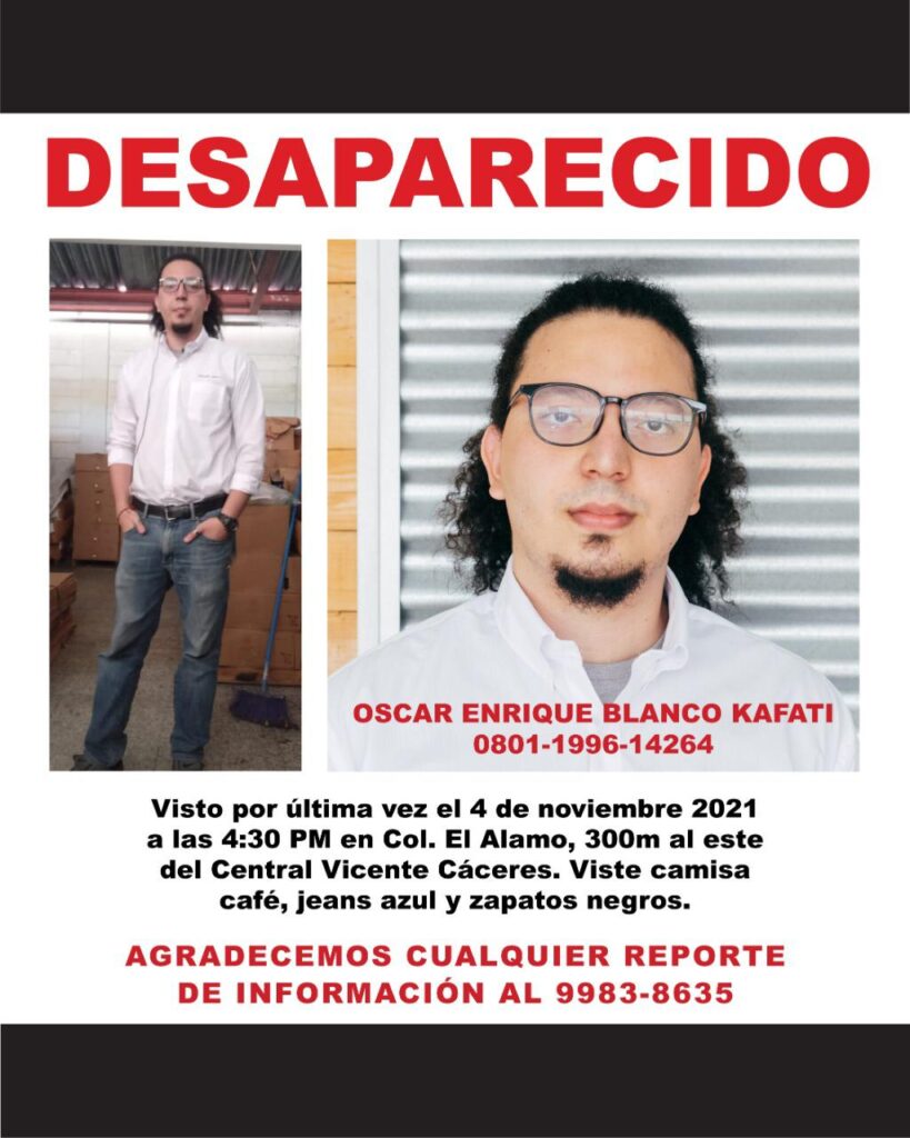Familiares de Oscar Enrique Blanco desarrollan actividades para saber sobre su paradero ya que lleva más de 40 horas de desaparecido.