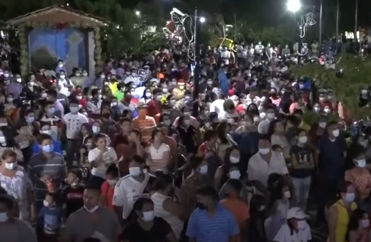 Pobladores de Puerto Cortés llegan al encendido del árbol navideño en el parque central