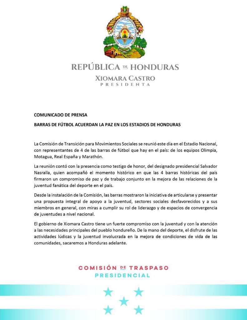 Barras más grandes del país acuerdan paz en los estadios en reunión con Comisión de Transición