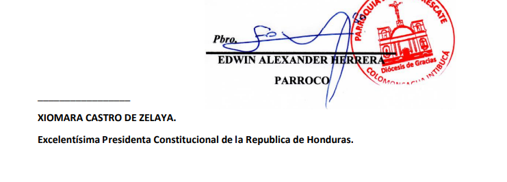 Por tanto: Señora presidenta, XIOMARA CASTRO DE ZELAYA, ruego por su investidura de