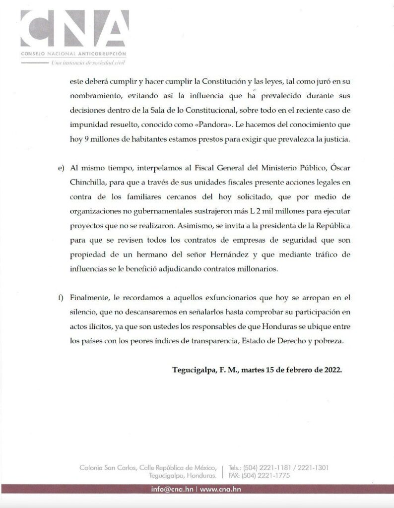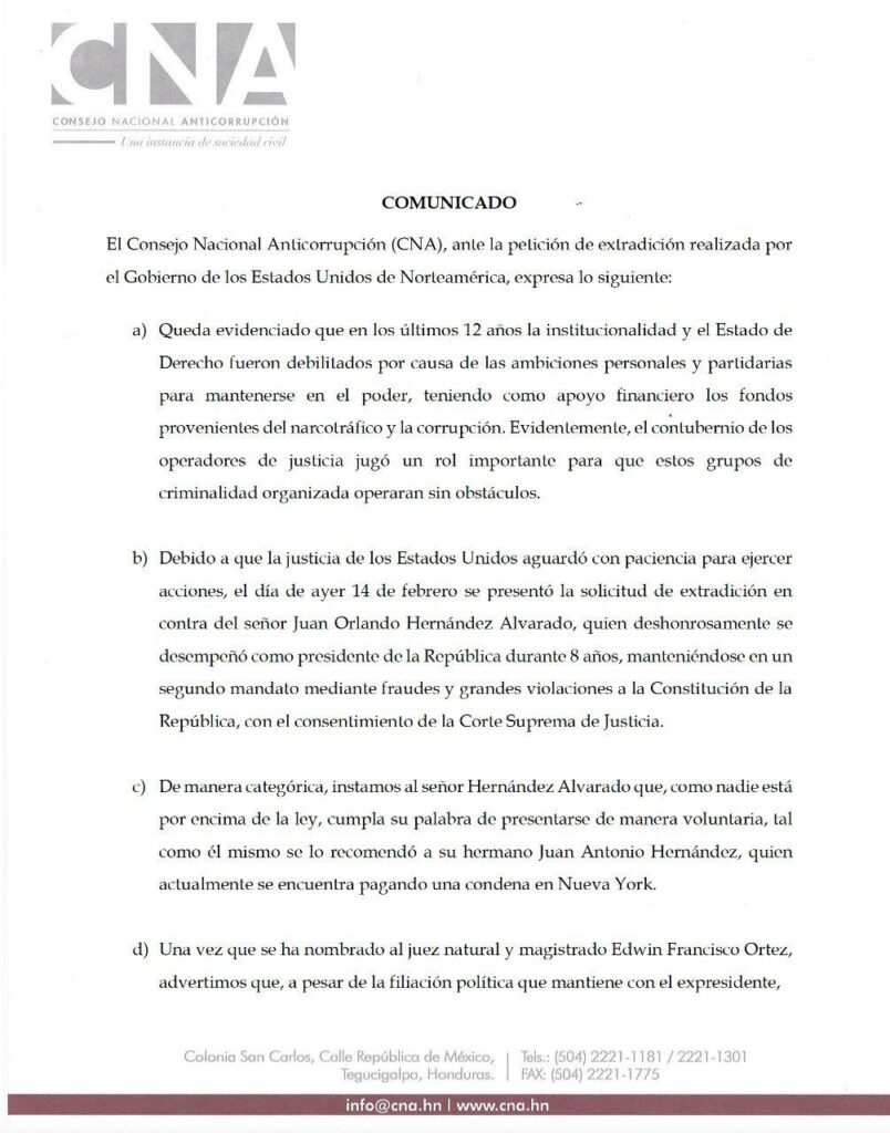 CNA insta al juez de extradición, evitar «influencias» y cumplir con la Constitución y las leyes