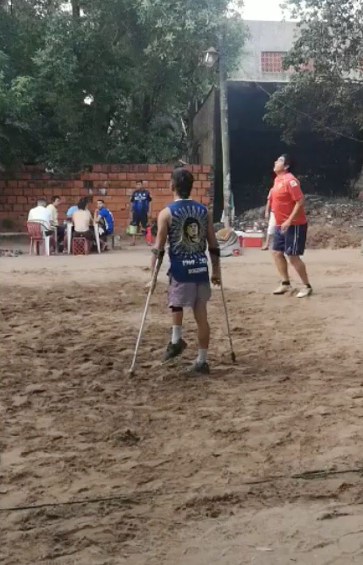 “Yo me siento una persona normal. En mi mente no está que tengo dificultades, si me retan a una carrera igual puedo correr y hasta ganar con mis muletas. Todas las tardes termino temprano mi trabajo para ir a la cancha para jugar piki voley (…) soy muy buen jugador”, contó el joven en conversación con Crónica.