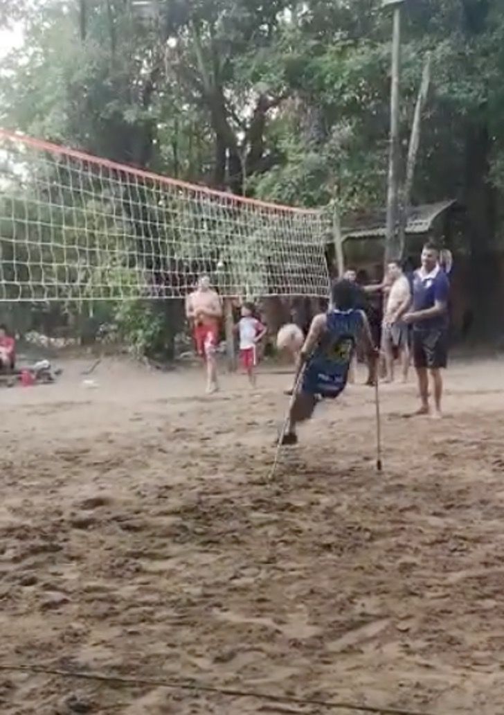 “Yo me siento una persona normal. Juego partido estando en muletas. La verdad que ya estoy acostumbrado y no me cansa para nada”, dijo Denis López, de 19 años, a quien se le da muy bien el piki voley.