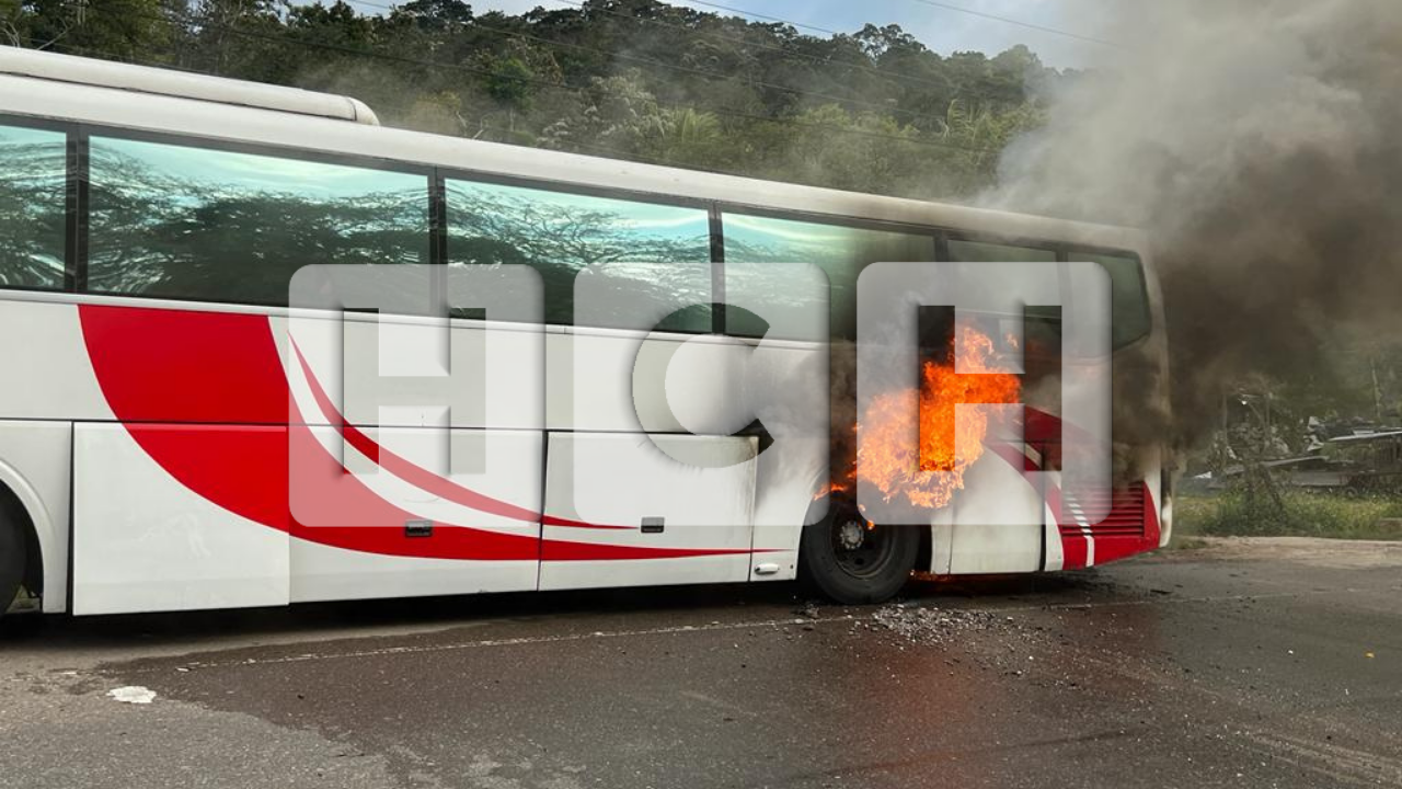 Un autobús del servicio interurbano tomó fuego en la ca-5 en el sector de Las Conchas en Taulabé, Comayagua.