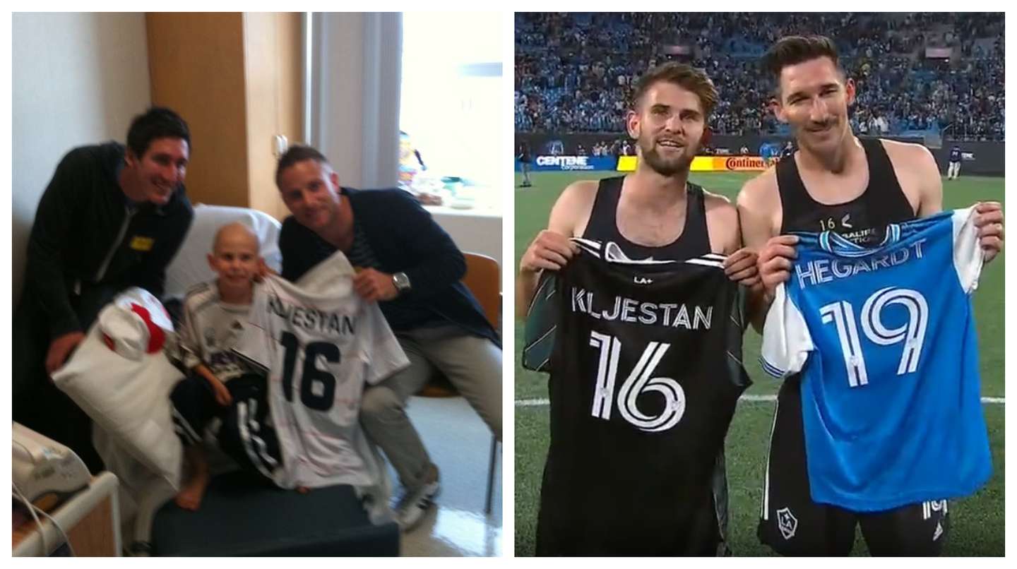La emoción invadió a la MLS este último fin de semana con el encuentro entre los futbolistas Sacha Kljestan, que juega en el LA Galaxy, y Chris Hegardt, de Charlotte FC. La historia que los une se remonta al año 2010, cuando Sacha visitó al pequeño Chris en el hospital en el que estaba haciendo un tratamiento para curarse de la leucemia y le regaló una camiseta suya.